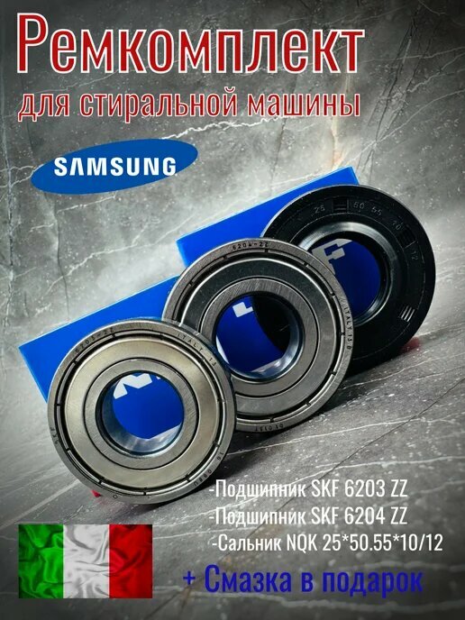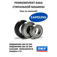 Ремкомплект бака Samsung. Смазка HIDRA-2 2гр. Подшипники SKF 6203 ZZ ,6204 ZZ. Сальник 25×50,55×10/12 NQK. DC62-00007A.: сравнение цен, характеристики, фото, актуальное наличие и цены.