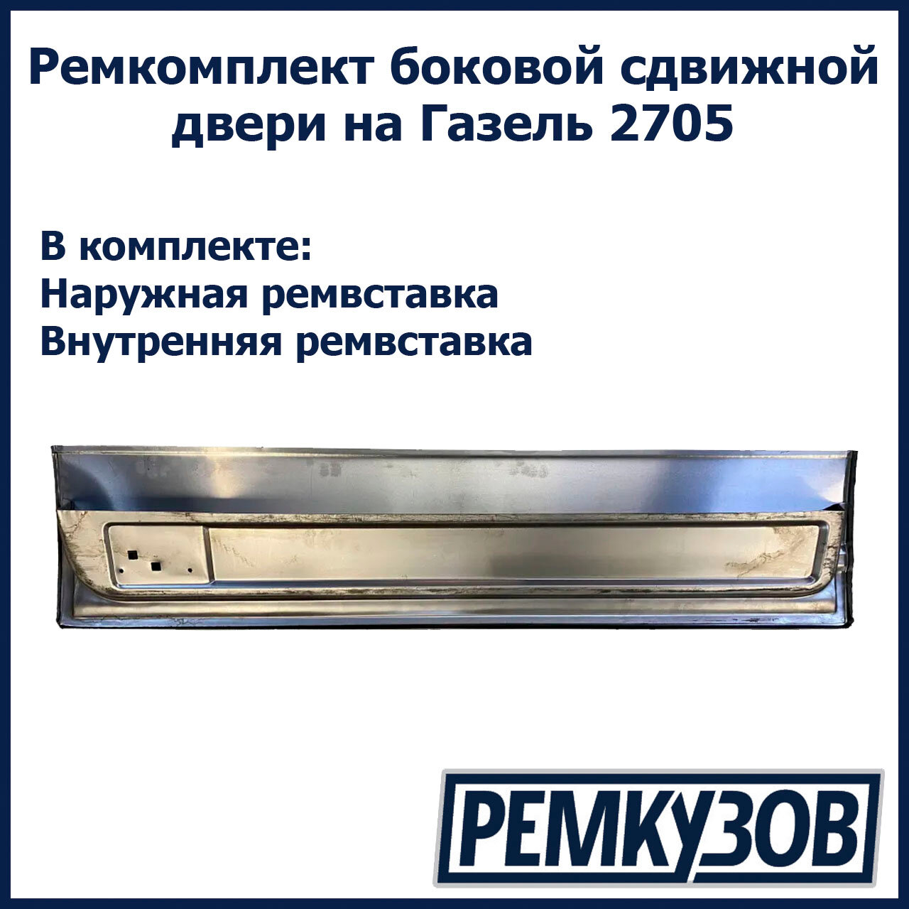 Ремонтный комплект для переварки боковой сдвижной двери на Газель 2705 (цельнометаллический фургон) и Соболь. В комплекте наружная и внутренняя ремвставки