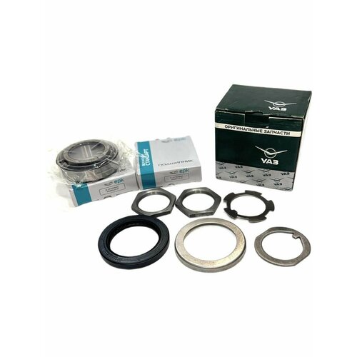Ремкомплект ступицы колеса для УАЗ представляет собой комплект, включающий все необходимые элементы для ремонта ступицы колеса. В комплект поставки входят подшипник ступицы 127509 (3151-3103025), кольцо упорное подшипника ступицы колеса УАЗ (127509) 0069-00-3103024-00, шайбу замочную (ромашка) подшипника ступицы колеса УАЗ 0069-00-2401055-00, сальник ступицы 60х85х10 с пружиной 3741-00-3103038-00 и гайки подшипника ступицы колеса УАЗ М45х1,5 0069-00-2401052.