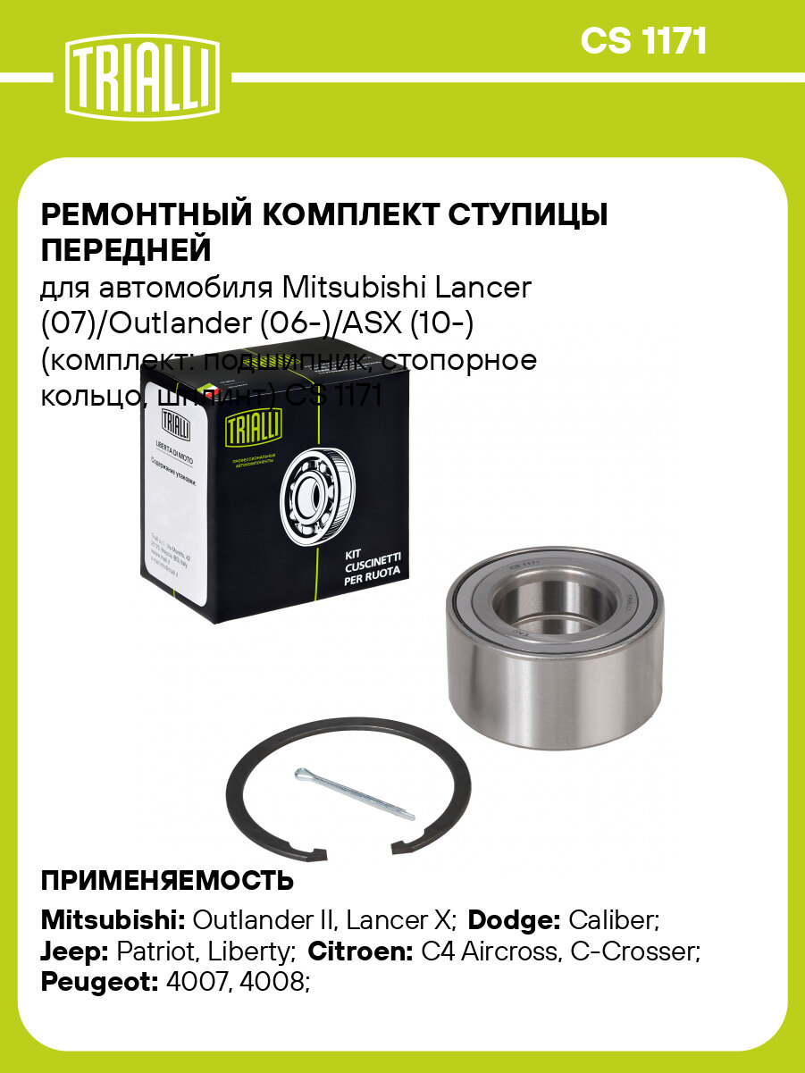 Ремонтный комплект ступицы передней для автомобиля Mitsubishi Lancer (07)/Outlander (06-)/ASX (10-) (комплект: подшипник, стопорное кольцо, шплинт)