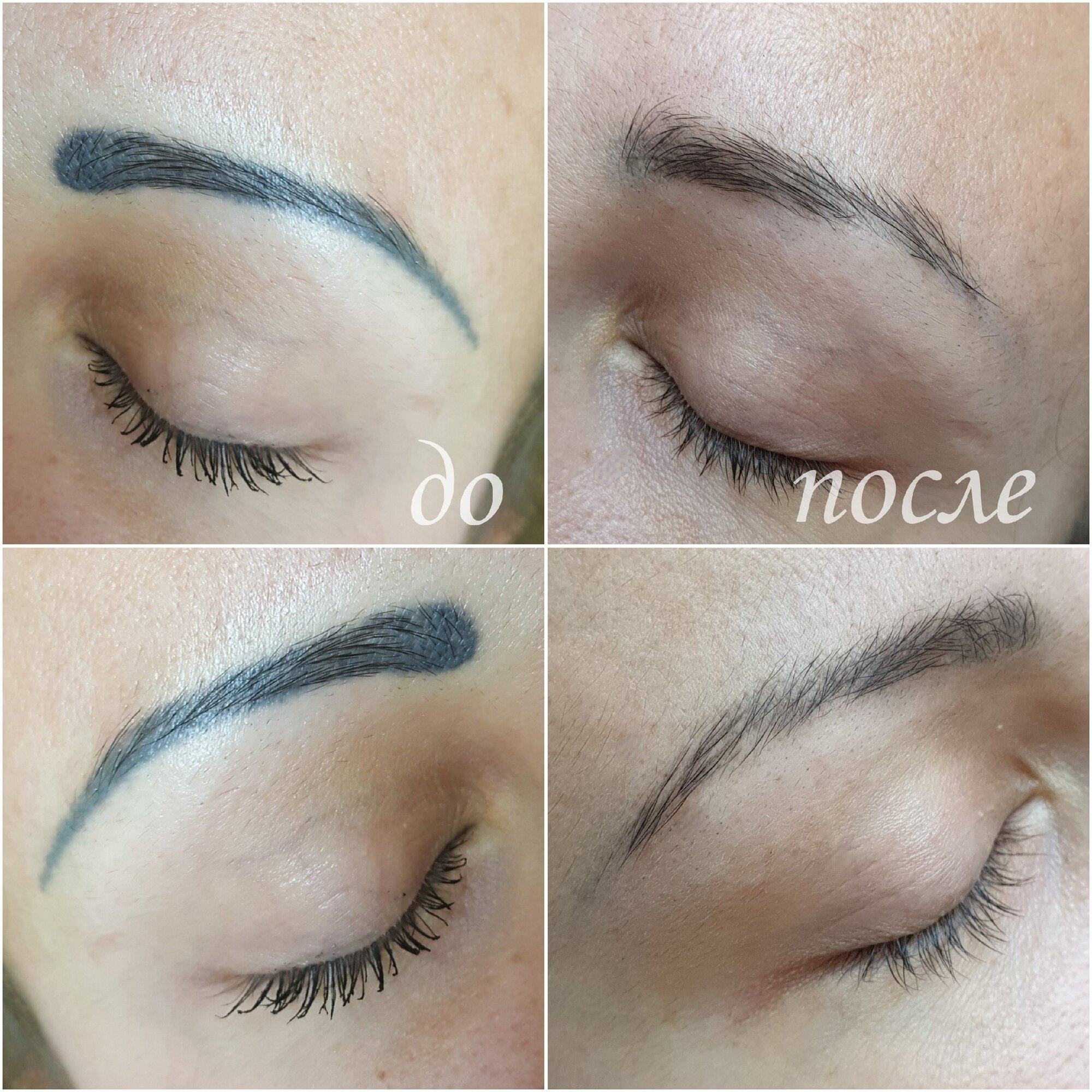 3. Для удаления пигмента в зоне бровей, хвостика стрелы на веках, каймы губ и на заступе, рекомендуем точечно-погружной метод. Для удаления пигмента с поверхности губ на сухой слизистой – короткие (2-3 мм) штриховые, как бы поцарапывающие движения.