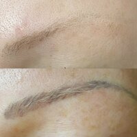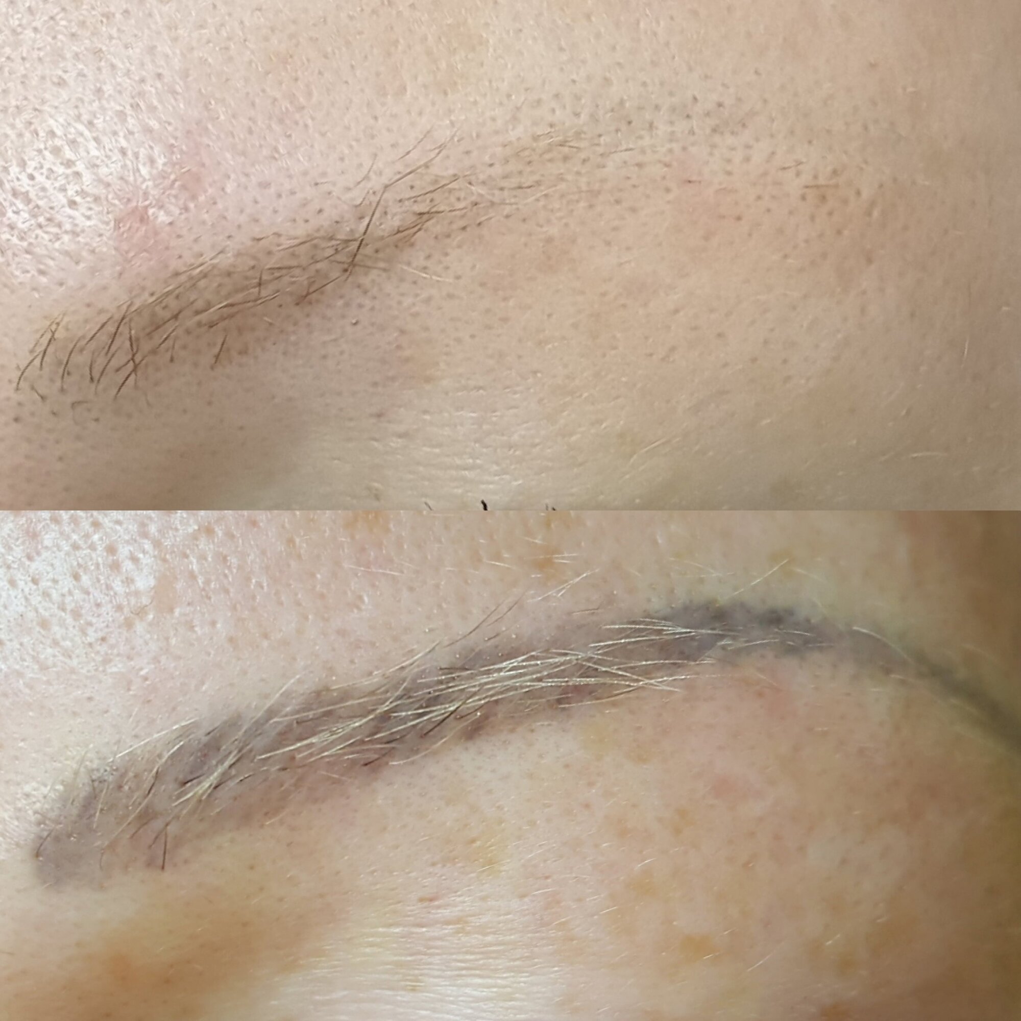 3. Для удаления пигмента в зоне бровей, хвостика стрелы на веках, каймы губ и на заступе, рекомендуем точечно-погружной метод. Для удаления пигмента с поверхности губ на сухой слизистой – короткие (2-3 мм) штриховые, как бы поцарапывающие движения.