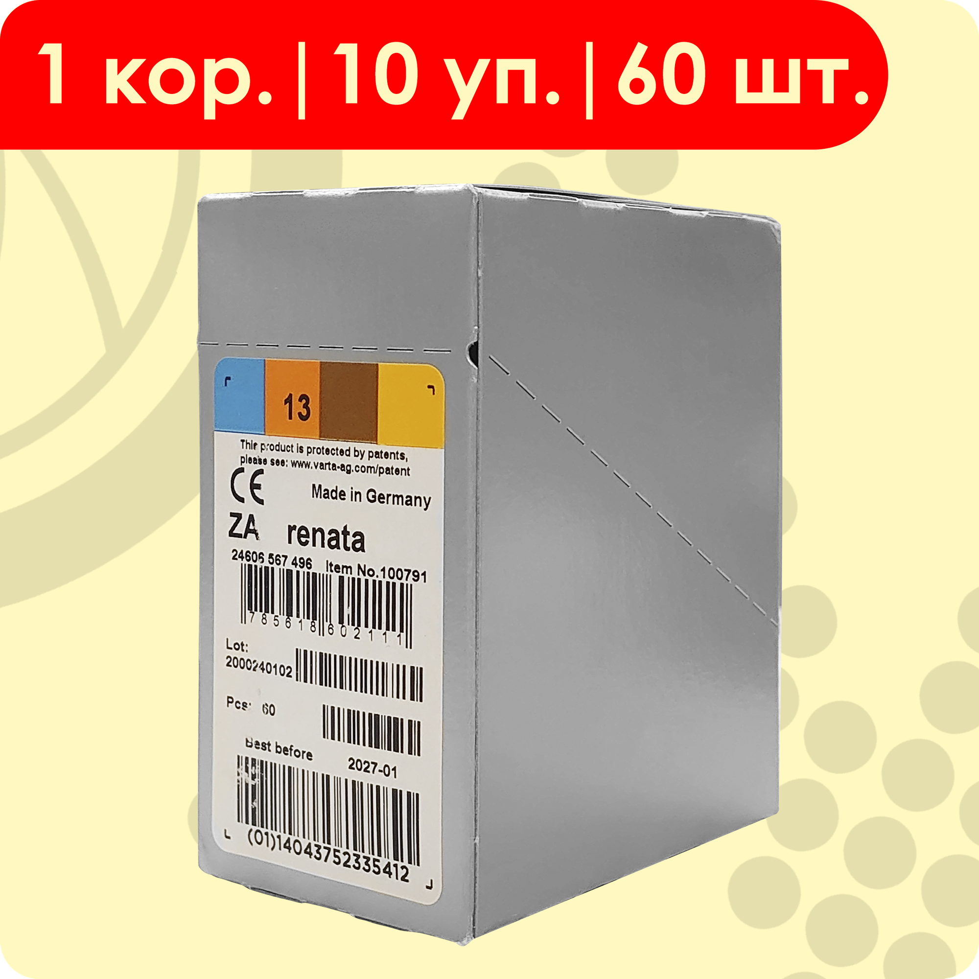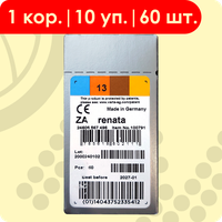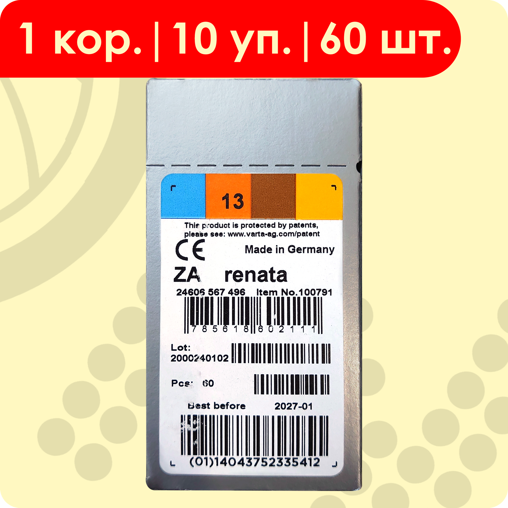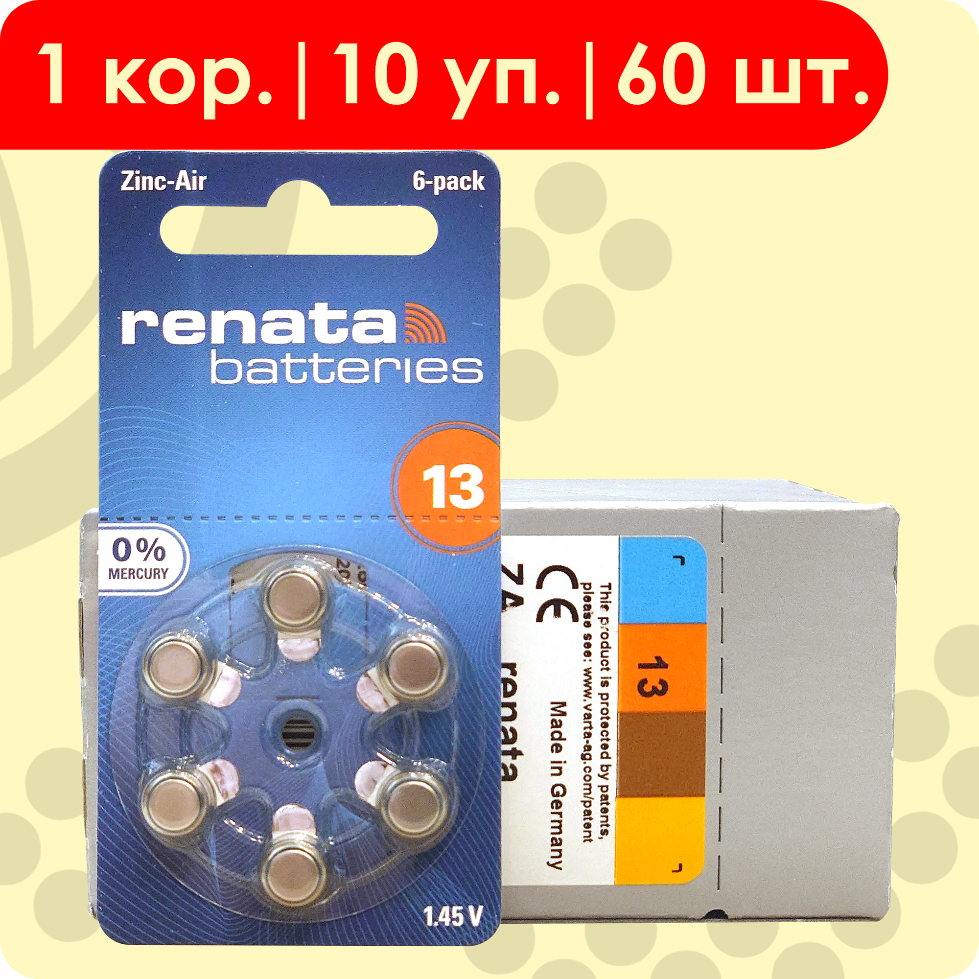 Купить Renata 13 (ZA13/Оранжевый) | 1,45 вольт Воздушно-цинковая батарейка для слуховых аппаратов — 60шт. с доставкой по всей России.