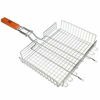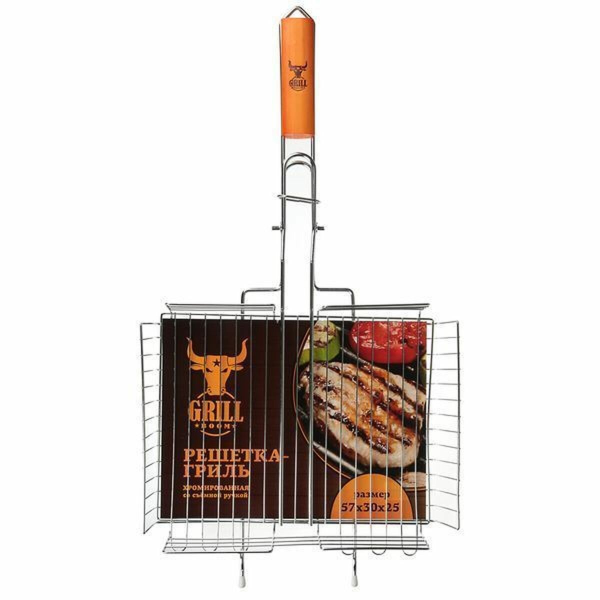 Решетка для гриля GRILLBOOM 30х25 см изготовлена из высококачественной хромированной стали, которая прекрасно выдерживает высокую температуру нагрева и идеально подойдет для приготовления мяса, рыбы и овощей. Надежная фиксация верхней части делает приготовление комфортным: продукты не выпадают при переворачивании решетки. Глубина 5 см позволяет готовить стейки из мяса и рыбы разной толщины. Деревянная, съемная ручка предохраняет руки от ожогов.