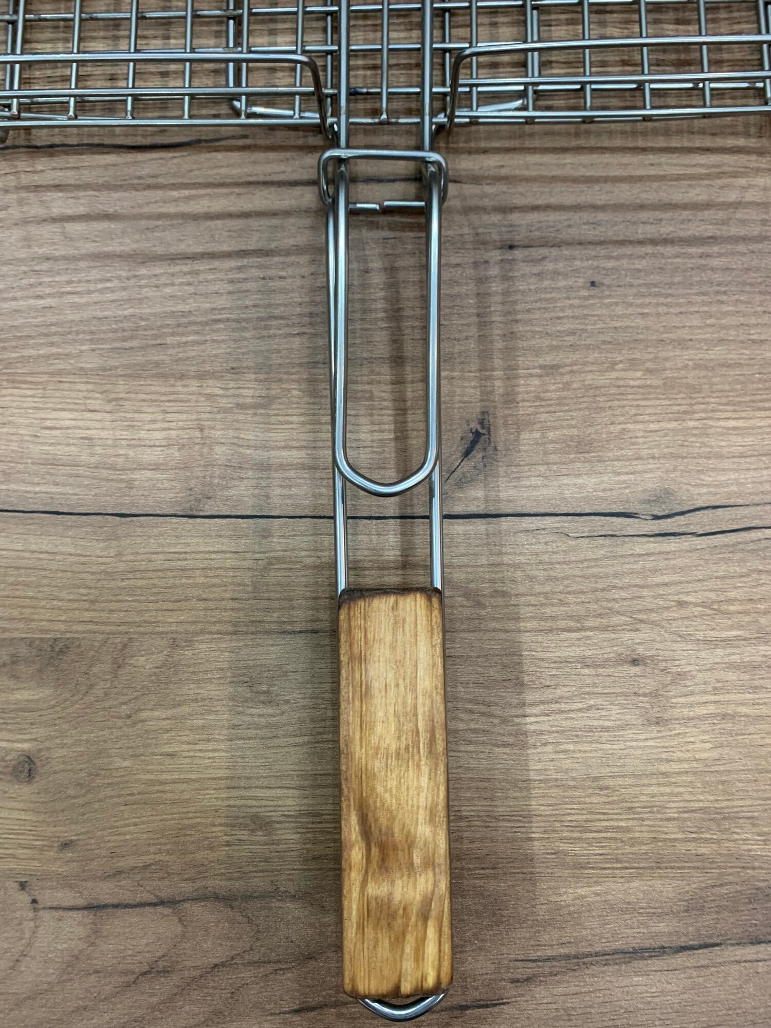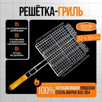 Сделано в России, г. Павлово — там, где мастерство с металлом доведено до совершенства. Решетка-гриль из пищевой нержавеющей стали AISI 304 создана для комфортного приготовления мяса, рыбы, овощей и других блюд. Без покрытия — только чистый вкус еды, без вредных добавок. Удобный фиксатор надежно держит крышку, а деревянная ручка из березы остается холодной. Усиленная конструкция решетки создает жесткий каркас, защищает от деформации. Толщина прутка каркаса 5мм, основной сетки 3мм.