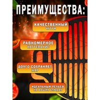 Чугунные изделия обладают естественными антипригарными свойствами. За счет низкой теплопроводности и высокой теплоемкости изделие равномерно прогревается по всей поверхности и долго сохраняет тепло.