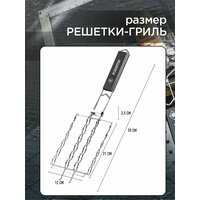 Решетка гриль для сосисок и колбасок позволяет приготовить одновременно 6 крупных или 12 тонких колбасных изделий благодаря регулируемой от 1,7 до 3,5 см высоте решетки. А узкая форма (ширина всего 12 см!) позволяет приготовить сосиски одновременно с основным блюдом практически на любом мангале. Никому не придется ждать (особенно детям!). Изогнутые усики решетки надежно фиксируют решетку на стенках мангала. Удобная деревянная ручка не нагревается во время эксплуатации, а пищевое коррозионностойкое покрытие обеспечивает долгий срок службы решетки.