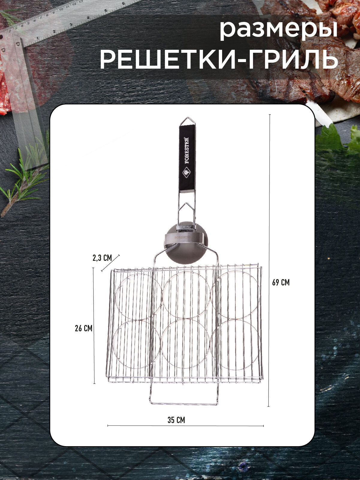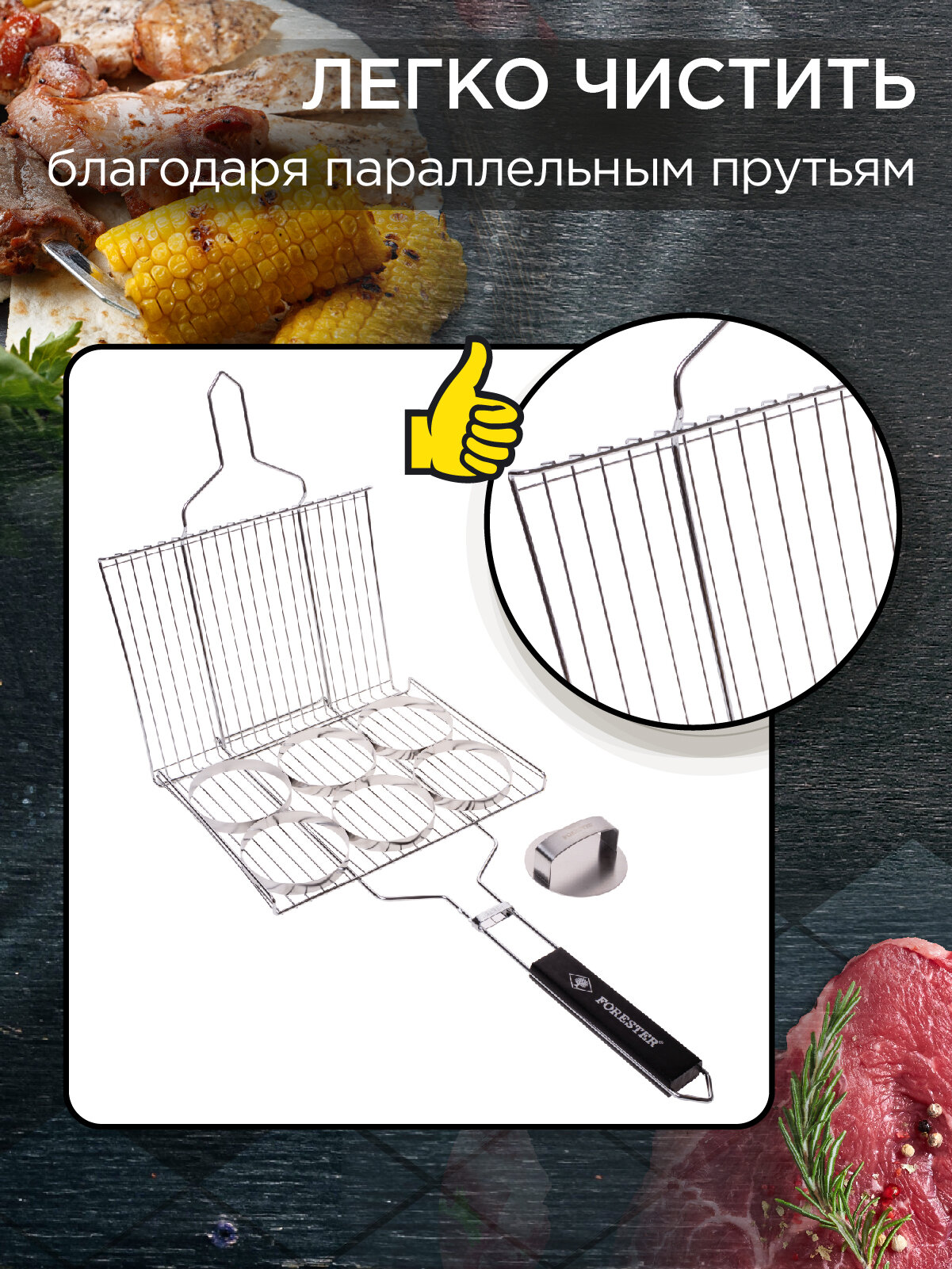Решетка-гриль Forester с 6 съемными формочками и бургер-прессом, 26*35 см: