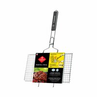 Решетка-гриль Forester средняя, 26x40 см BQ-N01/2 поможет быстро приготовить мясо, рыбу, птицу и овощи-гриль на открытом огне. С помощью специальных изогнутых усиков легко и надежно зафиксировать решетку на мангале. Удобная деревянная ручка убережет руки от ожогов. Решетка-гриль выполнена из высококачественной стали с нанесением двойного антикоррозийного покрытия. Можно не беспокоиться, что крышка откроется, ведь на ручке расположено специальное широкое кольцо-фиксатор. Благодаря усовершенствованному дизайну и наличию специального ограничителя угла раскрытия, без чьей либо помощи можно снять приготовленные продукты с решетки на весу, не запачкав стол или другую поверхность. Решетка-гриль имеет однонаправленное плетение прутьев на каждой плоскости, поэтому легко моется.