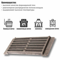 Решетка для печи представляет собой чугунную отливку, выполненную в форме плиты.