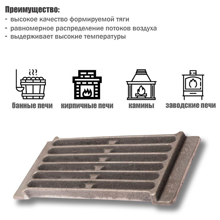 Улучшите горение в вашей печи с чугунными колосниками! Равномерное распределение воздуха – для полного и эффективного сгорания топлива. Стойкость к высоким температурам и окислению гарантирует долгий срок службы. Чугун не деформируется, сохраняя форму и функциональность. Оптимальная тяга – меньше дыма и сажи!