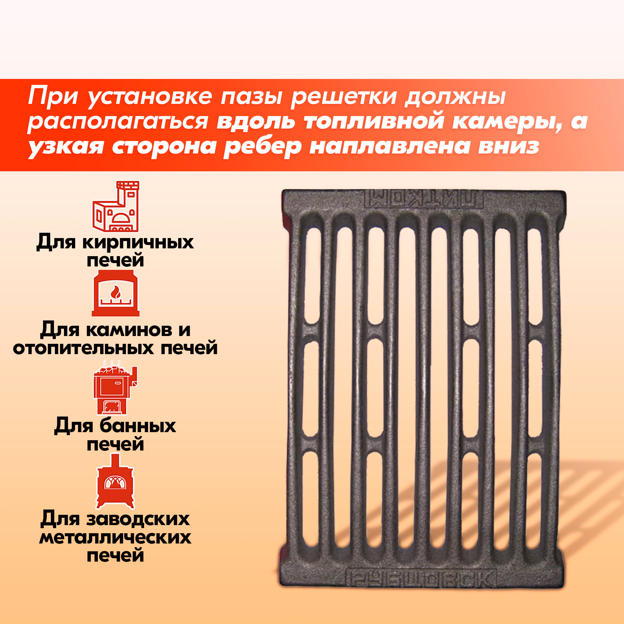 Купить Решетка чугунная колосниковая Рубцовск РД-3 (250*180) для печей и каминов литком с доставкой по всей России.
