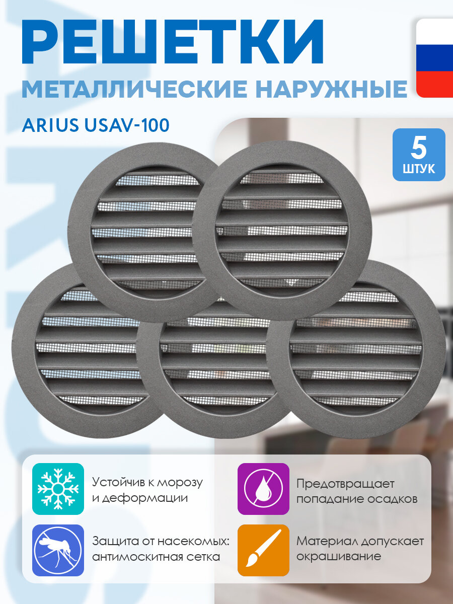Купить Решетка металлическая наружная ARIUS Usav-100 135365, 100 мм, антивандальная (комплект из 5-ти шт) с доставкой по всей России. Решетка металлическая наружная ARIUS Usav-100 135365, 100 мм, антивандальная (комплект из 5-ти шт): сравнение цен, характеристики, фото, актуальное наличие и цены.