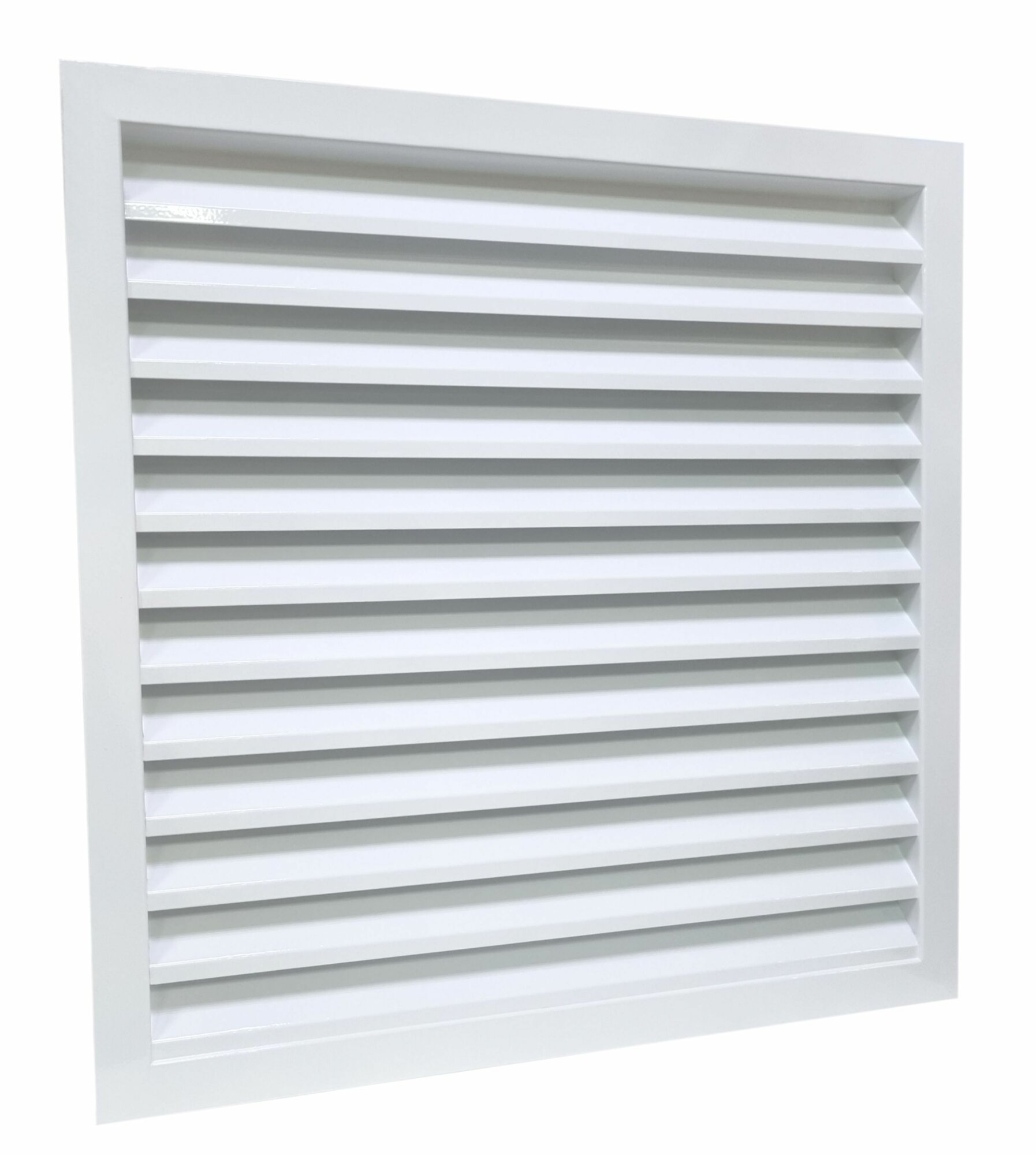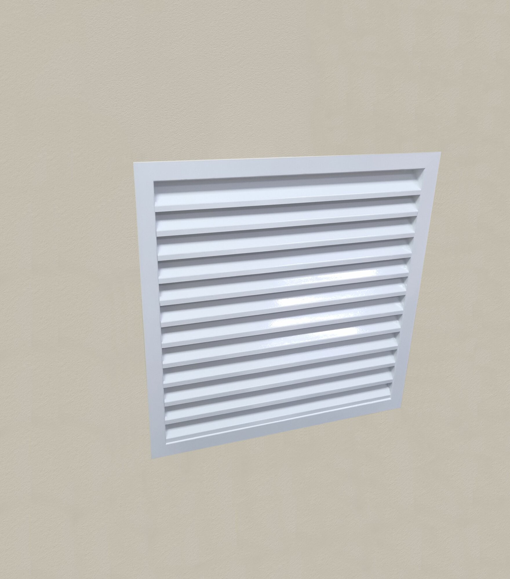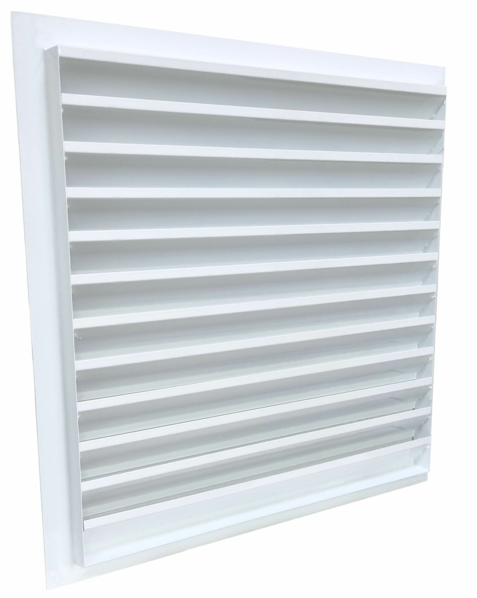 Купить Решетка наружная вентиляционная 400х400 жалюзийная встраиваемая стальная, белая, оцинкованная с доставкой по всей России.