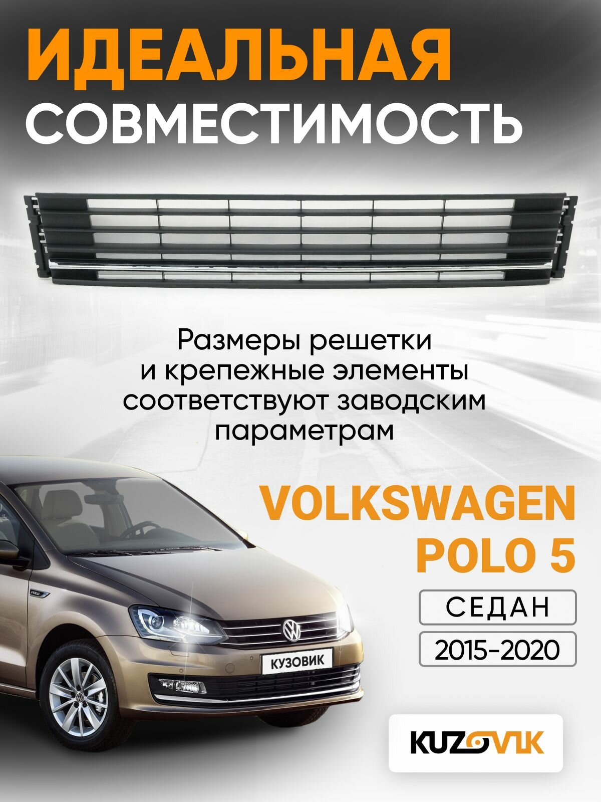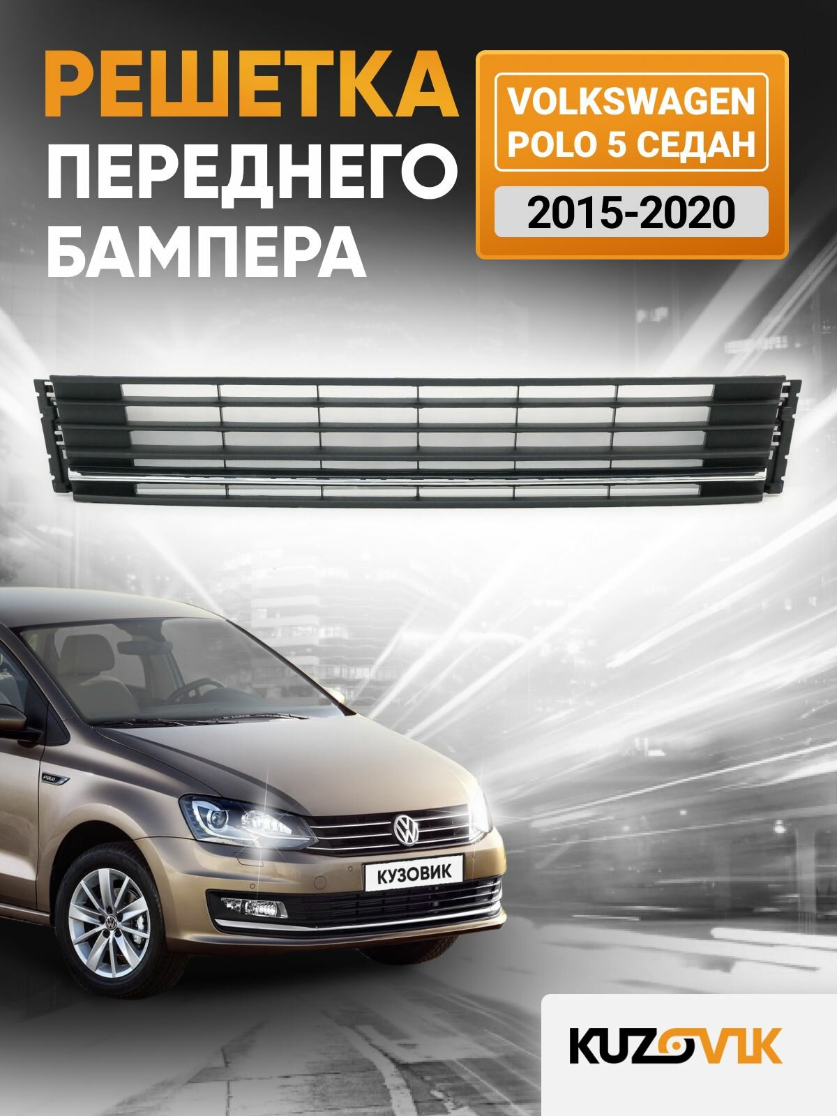 Решетка переднего бампера для Фольксваген Поло 5 Volkswagen Polo 5 (2015-2020) рестайлинг седан с хромом, новый под окраску заводское качество: сравнение цен, характеристики, фото, актуальное наличие и цены.