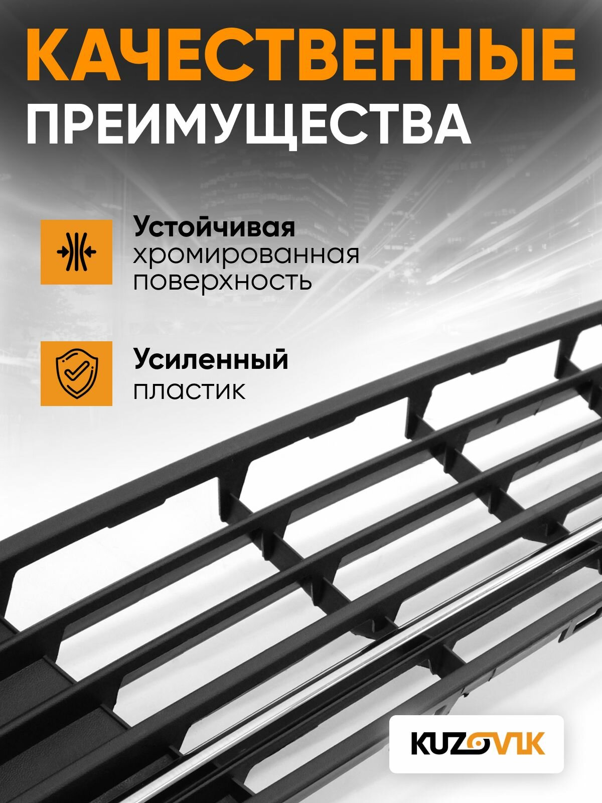 Купить Решетка переднего бампера для Фольксваген Поло 5 Volkswagen Polo 5 (2015-2020) рестайлинг седан с хромом, новый под окраску заводское качество с доставкой по всей России.