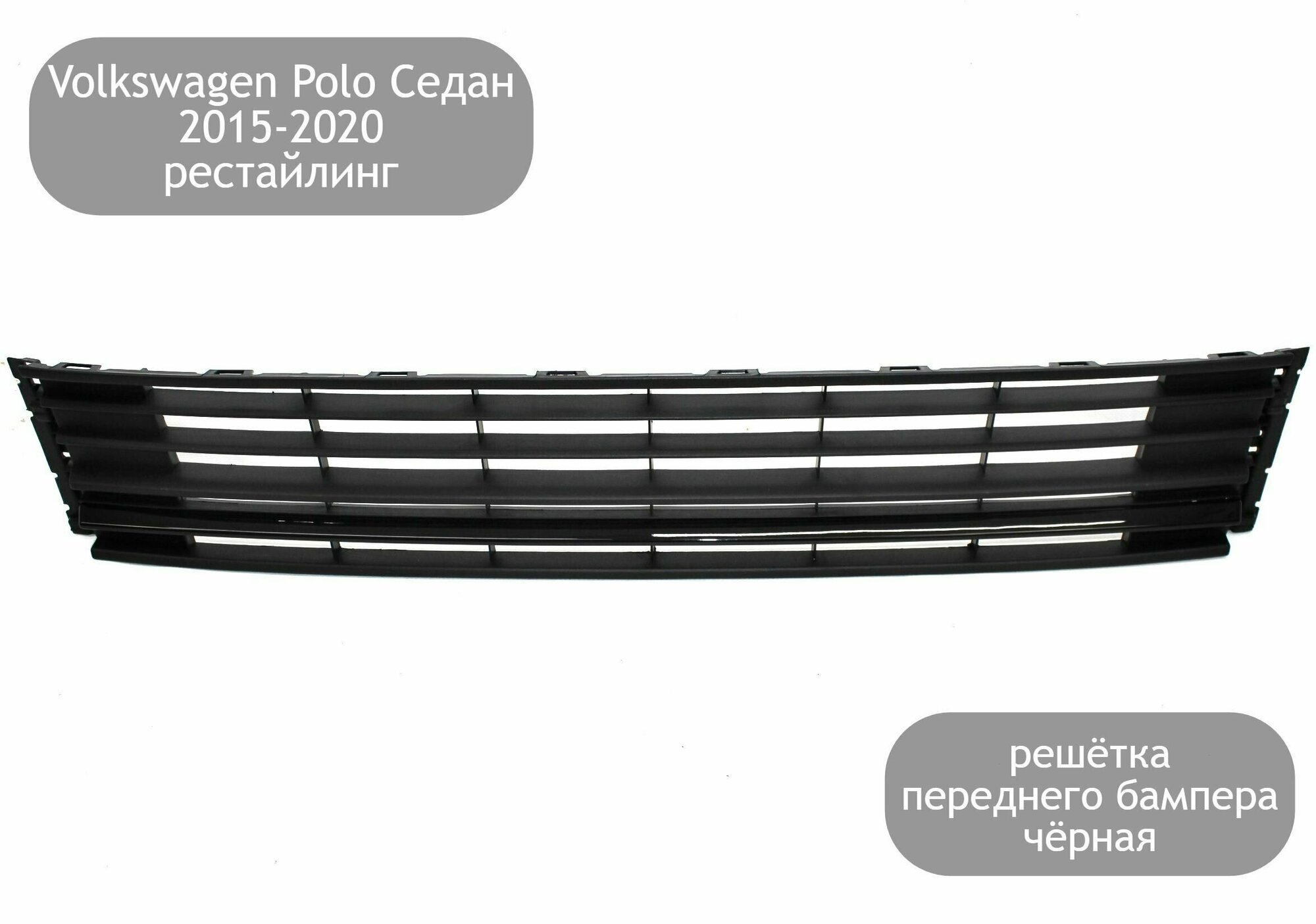 Решетка переднего бампера нижняя центральная чёрная для Volkswagen Polo Седан 2015-2020 (рестайлинг): сравнение цен, характеристики, фото, актуальное наличие и цены.
