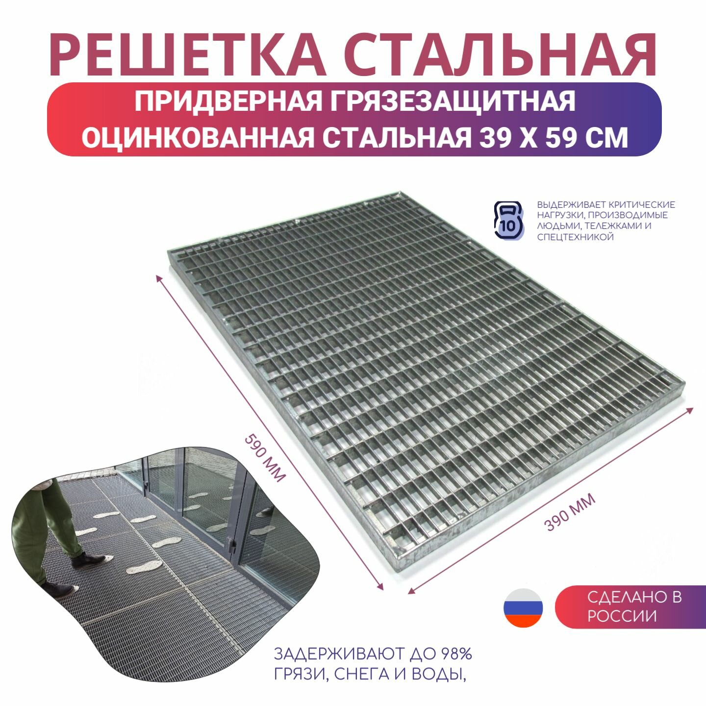 Решетка придверная стальная оцинкованная, настил 390×590 мм: сравнение цен, характеристики, фото, актуальное наличие и цены.