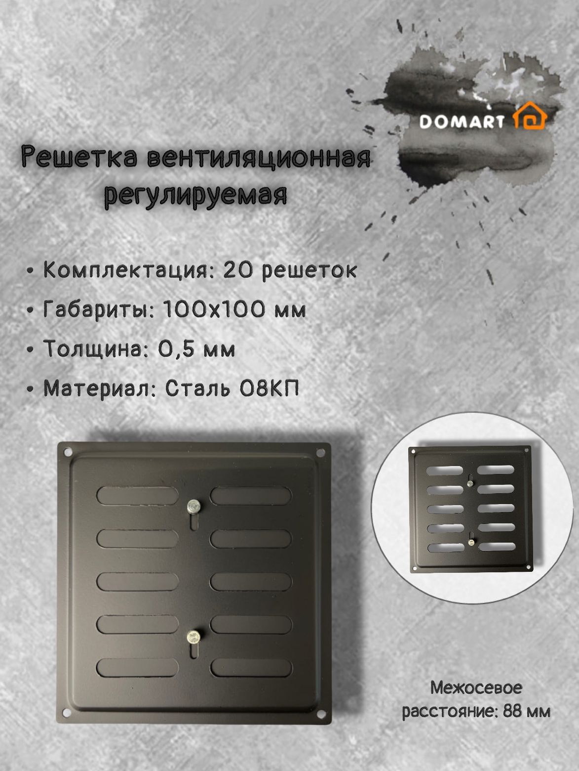 Вентиляционная решетка металлическая, решетка для вентиляции регулируемая 100х100, комплект 20 шт черная: сравнение цен, характеристики, фото, актуальное наличие и цены.