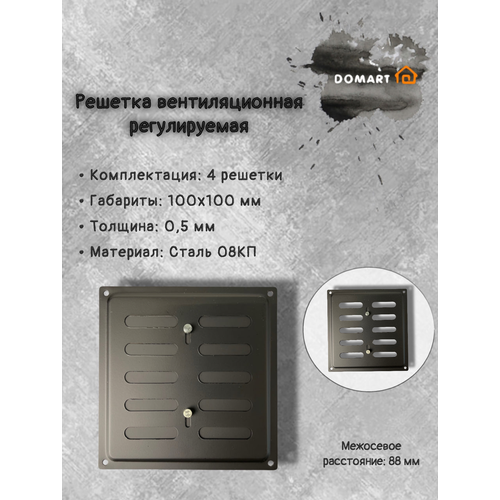Купить Решетка вентиляционная 100х100 регулируемая, черная (комплект 4 шт) с доставкой по всей России. Решетка вентиляционная 100х100 регулируемая, черная (комплект 4 шт): сравнение цен, характеристики, фото, актуальное наличие и цены.