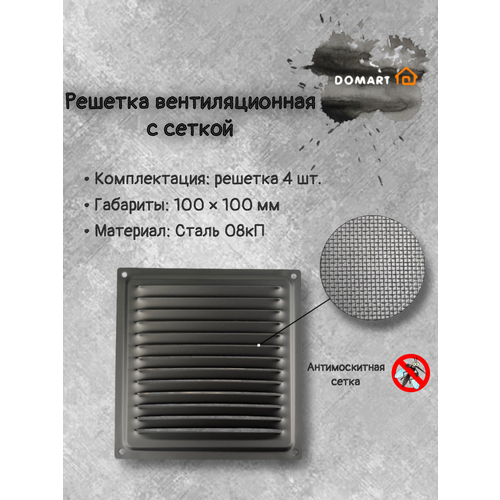 Купить Решетка вентиляционная 100х100 с сеткой, черная (комплект 4 шт) с доставкой по всей России. Решетка вентиляционная 100х100 с сеткой, черная (комплект 4 шт): сравнение цен, характеристики, фото, актуальное наличие и цены.
