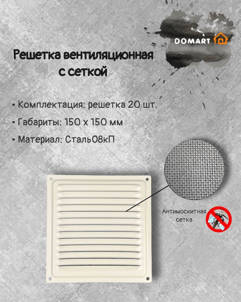 Вентиляционная решетка металлическая, решетка для вентиляции с сеткой 150х150, комплект 20 шт белая: сравнение цен, характеристики, фото, актуальное наличие и цены.