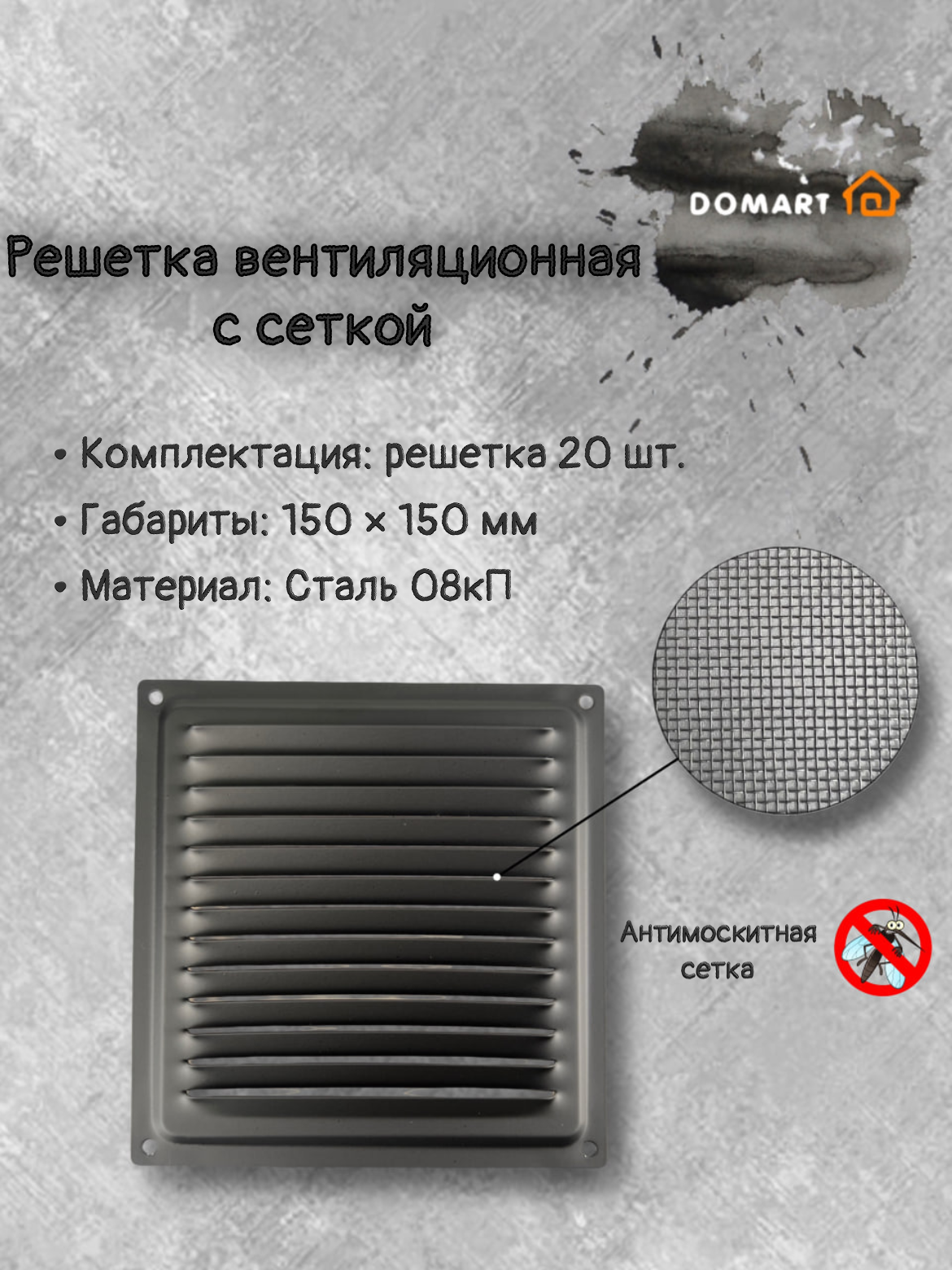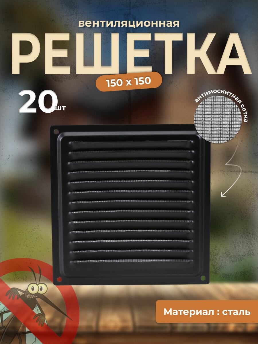 Вентиляционная решетка металлическая, решетка для вентиляции с сеткой 150х150, комплект 20 шт черная: сравнение цен, характеристики, фото, актуальное наличие и цены.