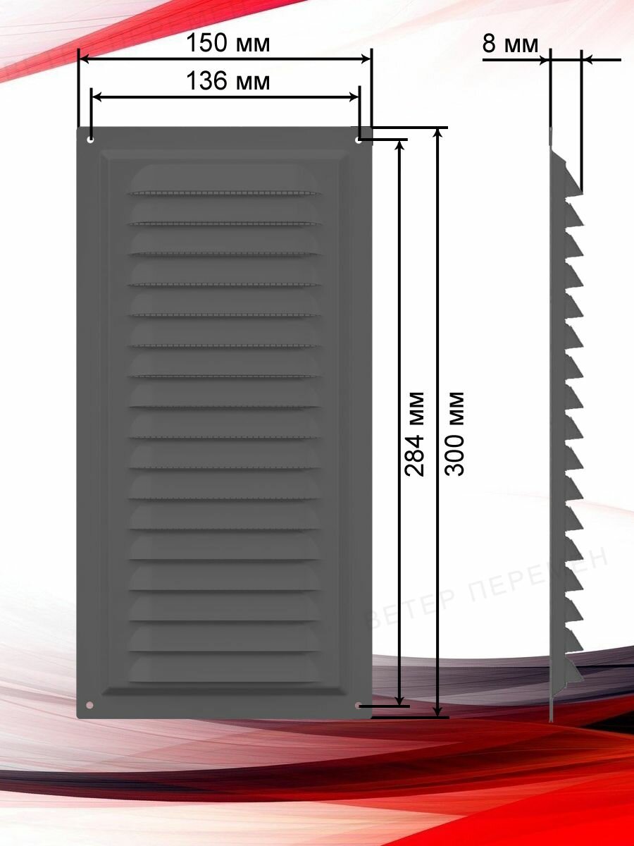 Купить Решетка вентиляционная 150х300 мм, металлическая, с сеткой, цвет графитовый серый с доставкой по всей России. Решетка вентиляционная 150х300 мм, металлическая, с сеткой, цвет графитовый серый: сравнение цен, характеристики, фото, актуальное наличие и цены.