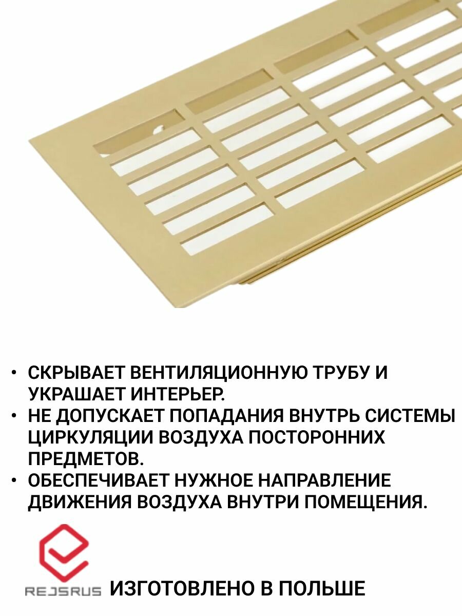 Решетка вентиляционная алюминиевая 245х60 мм, цвет золото матовое, 1 шт.