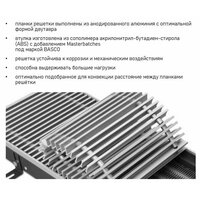 Решётка для внутрипольных конвекторов является съемным декоративным элементом и изготавливается из анодированного алюминия. В конструкцию встроена гибкая пружина, которая упрощает установку и транспортировку решетки, а также уход за конвектором. Оптимально подобранное расстояние между пластинами решётки (12 мм) обеспечивает высокую степень теплопередачи и придаёт конвектору эстетичный внешний вид. Алюминиевая решетка выдерживает большую весовую нагрузку, устойчива к коррозии и механическому износу.