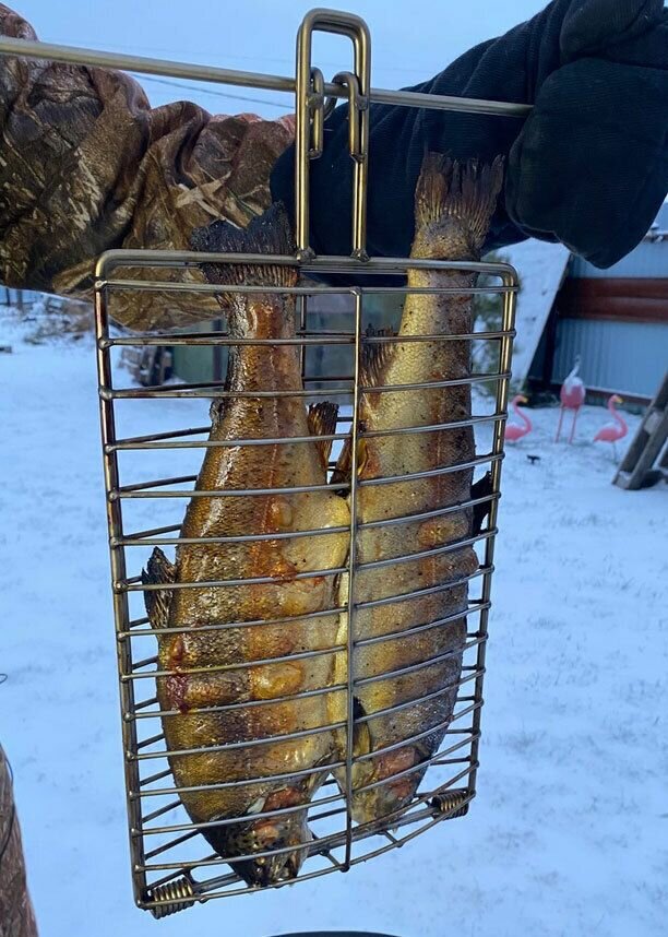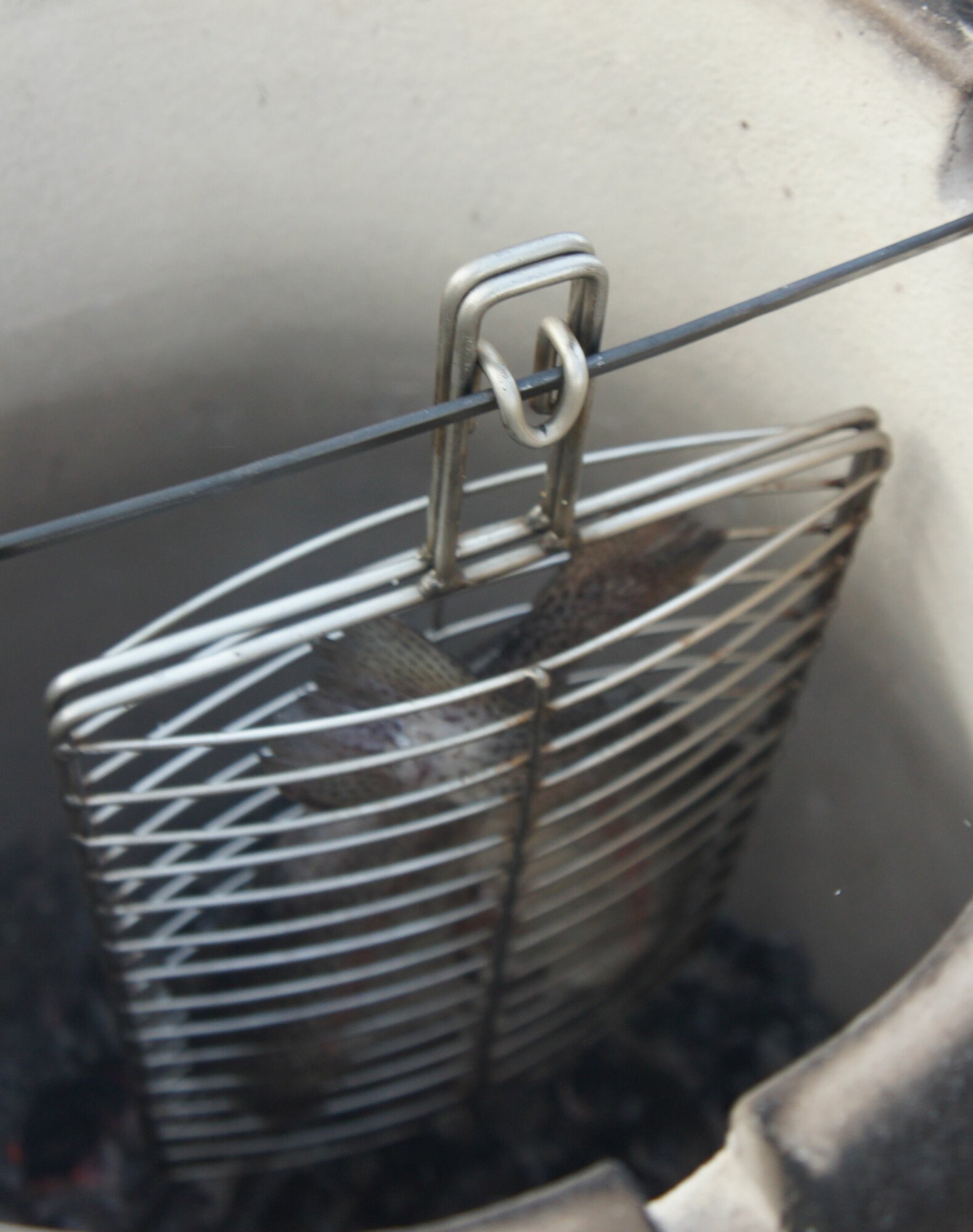 Отличным вариантом для тех, кто любит сочную и полезную рыбу, станет решётка для тандыра — аксессуар, с помощью которого можно запечь речную, морскую или океаническую обитательницу целиком или частями. Тандыр среднего или большого размера может позволить разместить сразу несколько таких комплектующих — на радость большой компании, предвкушающей ароматный и полезный «улов»! Решётка для рыбы в тандыре размещается вертикально и подвешивается за специальное «ухо».