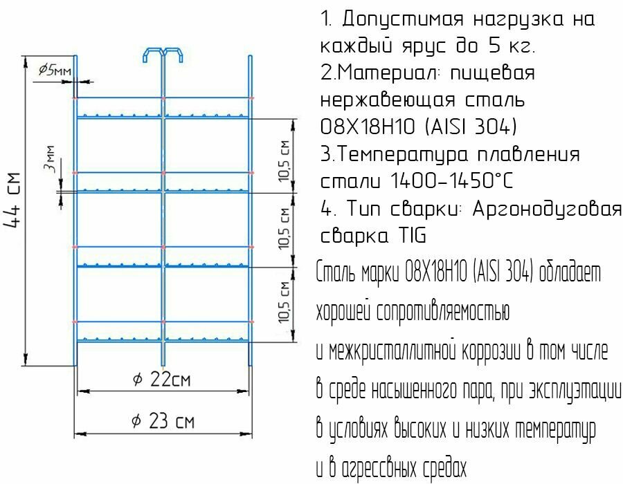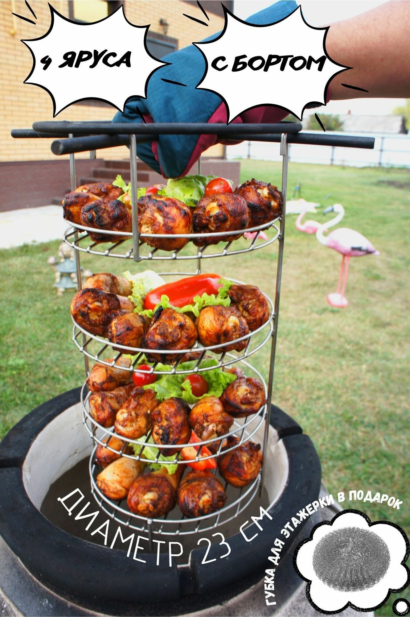 Этажерка для тандыра 4-х ярусная под крестовину диаметр 23 см, Высота 44 см, с бортом.