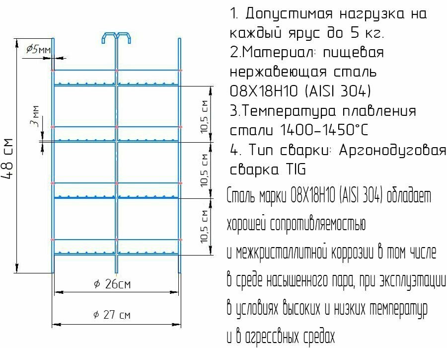 - Допустимая нагрузка на каждый ярус до 5 кг.