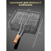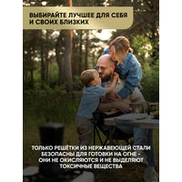 **Удобство использования** Получайте удовольствие от процесса готовки на природе! Ручка из дерева позволяет легко переворачивать барбекю, не обжигая руки. Металлические прутья равномерно распределяют тепло, обеспечивая идеальную прожарку стейков со всех сторон.
