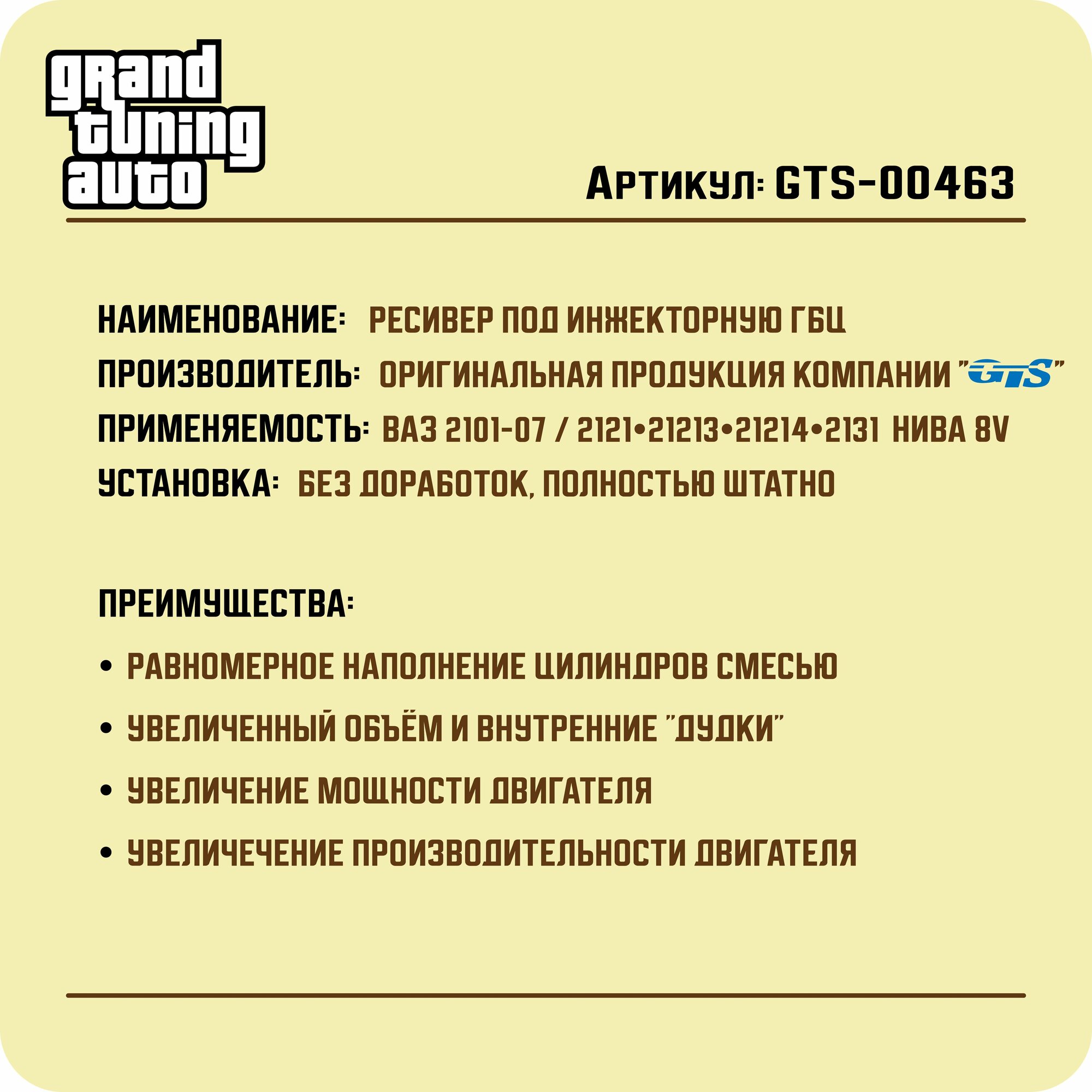 Ресивер GTS для а/м ВАЗ 2101-07 / 2121,21213,21214,2131 нива 8V круглый под инжекторную ГБЦ