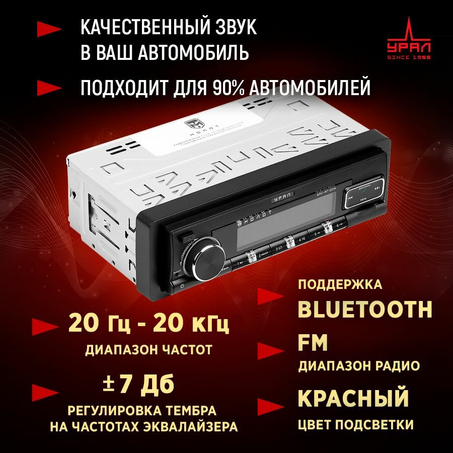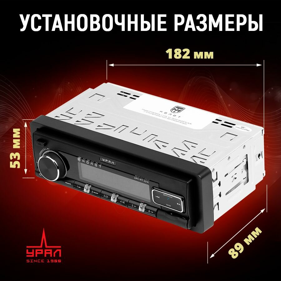 | Подробная комплектация | Автомагнитола Урал МОЛОТ АРС-МТ 221С, документация, монтажный комплект |