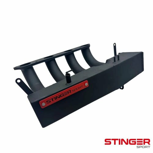 Ресивер "Stinger sport" ВАЗ Предназначен для автомобилей ВАЗ 2108-72 оснащенных 16ти клапанным двигателем с механической дроссельной заслонкой. Объем 3.3 литра, диаметр отверстия под дроссель 56мм, внутренний диаметр отверстия впускного фланца 39мм. Изготовлен и стали, марки08 ПС конструкционная углеродистая сталь, порошковая окраска. Установка: Ресивер для 16-ти клапанного автомобиля устанавливается вместо стандартного ресивера с минимальными доработками. Наибольший эффект достигается в комплексе с тюнинговыми распредвалами. Рекомендуется установка увеличенной дроссельной заслонки и тюнинговых распредвалов При установке рекомендуется замена программы в ЭБУ. Не требует переноса шланга сапуна, дудки конические, точеные, крышка наклонная для равномерного распределения воздуха между цилиндрами. Смещает полку момента в верхний диапазон работы двигателя (основной эффект с 4500 об/мин).
