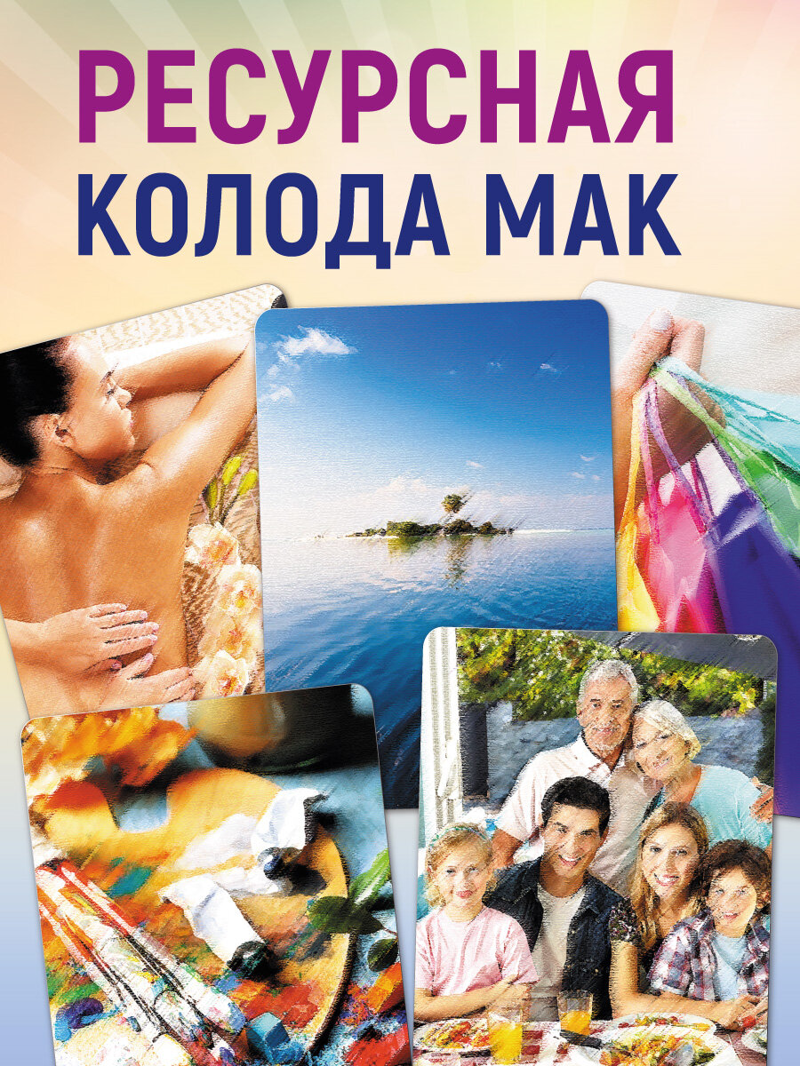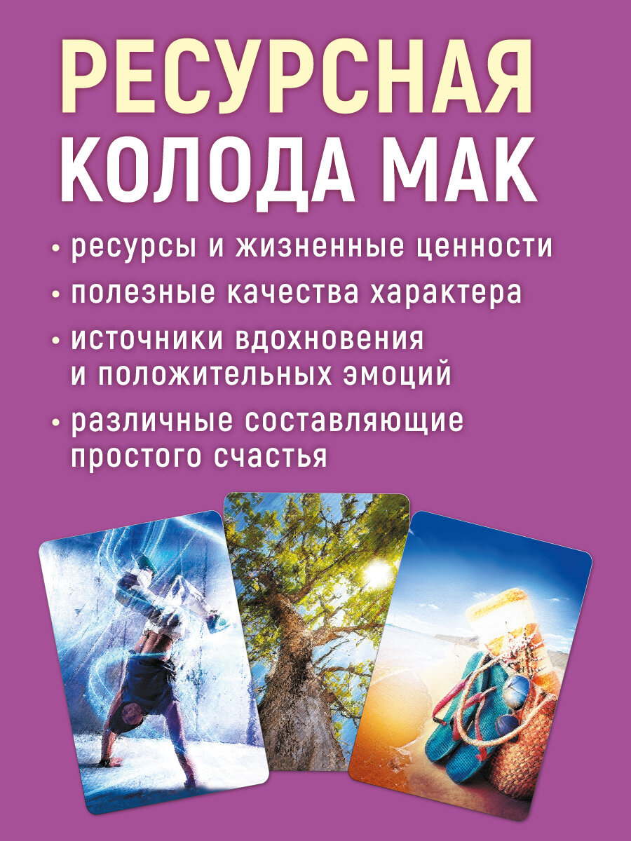 МАК содержит обработанные фотографии современных российских и зарубежных авторов из фотостоков. Изображения указывают на основные жизненные ценности (Бог, любовь, друзья, семья и др.), ресурсы (деньги, образование, дачный огородик и др.), области творчества (рукоделие, музыка, рисование и др.), а также полезные качества характера (легкость, целеустремленность, умение радоваться жизни и др.), которые также может стать необходимым ресурсом для последующих свершений. Определенные качества характера также символизируют 10 карт с изображениями представителей животного мира.