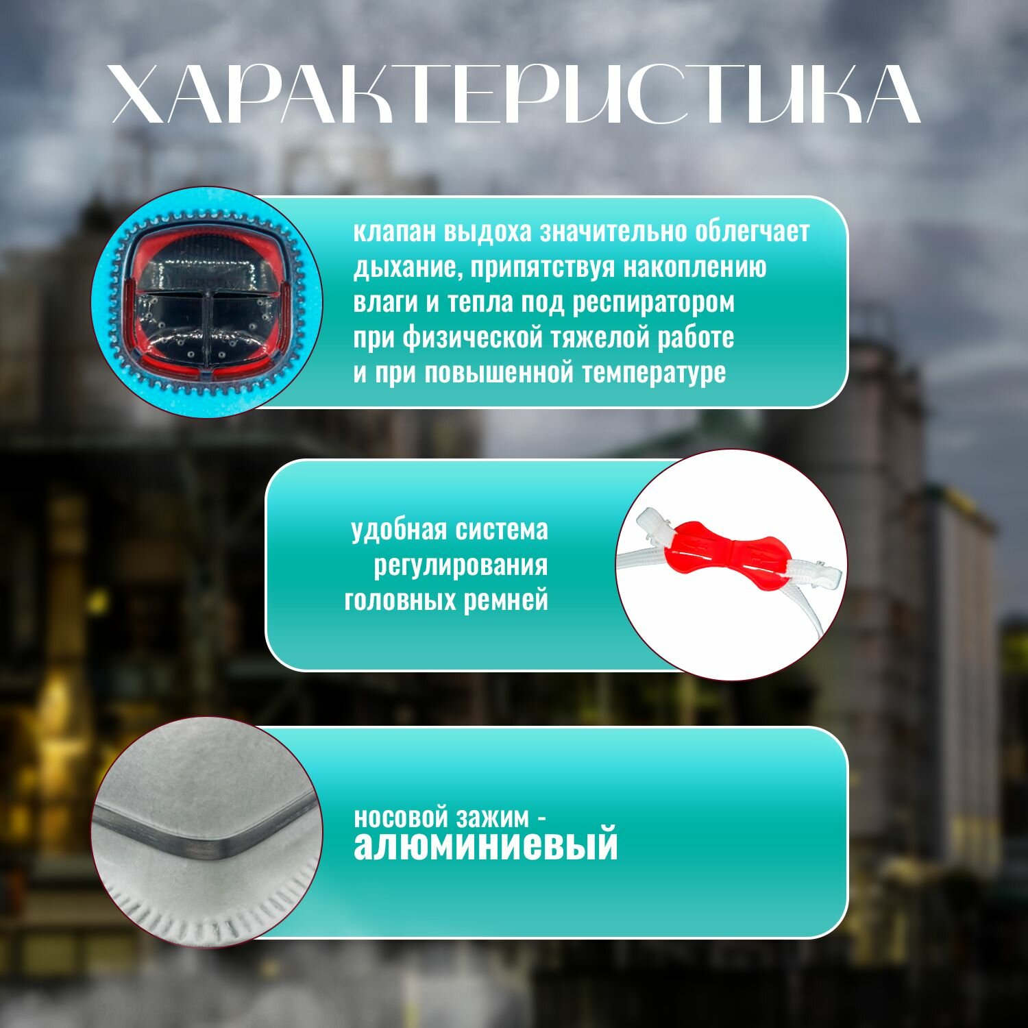 Ограничения при использовании: полумаска одноразовая, использовать до затруднения дыхания. Не используйте полумаску в случае, если вы носите бороду, т. к. это нарушает плотность прилегания полумаски к лицу по линии обтюрации. Полумаска приходит в негодность и подлежит замене в случае ее снятия на время в загрязненной зоне. При повреждении полумаски или затруднении дыхания необходимо покинуть загрязненную зону и заменить полумаску на новую.