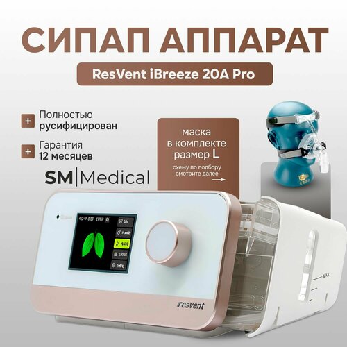 Купить ResVent iBreeze 20A Pro авто СИПАП аппарат для контроля сна и лечения апноэ с увлажнителем + маска носовая NM2 размер большой L с доставкой по всей России.