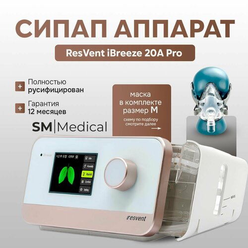 ResVent iBreeze 20A Pro Авто СИПАП прибор для контроля сна и лечения апноэ и храпа + маска лицевая средний размер M: сравнение цен, характеристики, фото, актуальное наличие и цены.