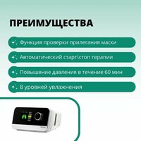 · Технические характеристики и особенности- Лечебное давление от 3-20 смH20, автоматический режим работы - Режим autoRamp помогает пациенту заснуть. Аппарат анализирует поведение пациента, поддерживает максимальный комфорт и низкое давление до момента, когда наступит сон. Затем аппарат перейдет в стандартный режим работы, основываясь на предустановленных настройках. - Resvent iBreeze 20A оборудован системой компенсации, учитывающий утечки в маске, контуре и высоту над уровнем моря - Функция E-COMP помогает новым пациентам адаптироваться к целевому давлению с шагом 1 см H2O в день, начиная с 50% от необходимого лечебного давления, прописанного в результате диагностики - Пользовательский интерфейс интуитивно понятен, имеется яркий цветной дисплей, русифицированное меню - Интеллектуальный увлажнитель iBreeze 20A обеспечивает непрерывный контроль уровня воды и максимальную безопасность. Автоматически отключается, при отсутствии воды. - Уникальная интеллектуальная функция сброса давления (IPR) позволяет легче дышать во время сна, обеспечивая больший комфорт - Вес аппарата всего 1,35 кг, имеет самые компактные размеры из всех стационарных автоматических СИПАП-аппаратов
