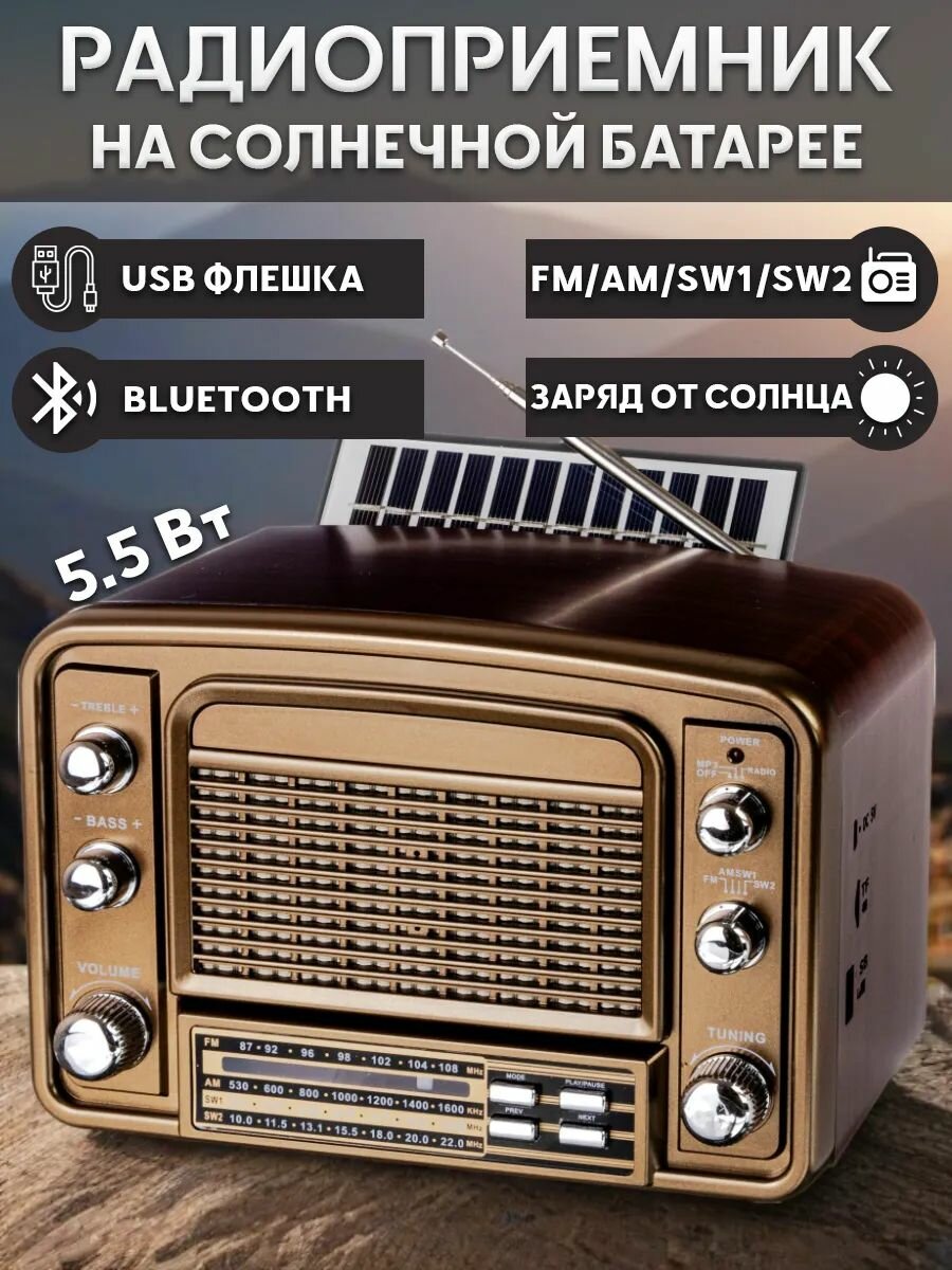 Купить Ретро радиоприемник блютуз на солнечной батарее с доставкой по всей России.