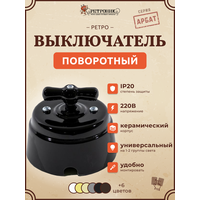 Ретро выключатель 1-2 кл поворотный керамический interior electric, серия «арбат», 220/10а, черный РСЗК-05-2: сравнение цен, характеристики, фото, актуальное наличие и цены.