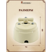 Ретро выключатель 1-2 клавишный поворотный керамический interior electric, серия Арбат, 220/10а слоновая кость ВПК-02-2: сравнение цен, характеристики, фото, актуальное наличие и цены.