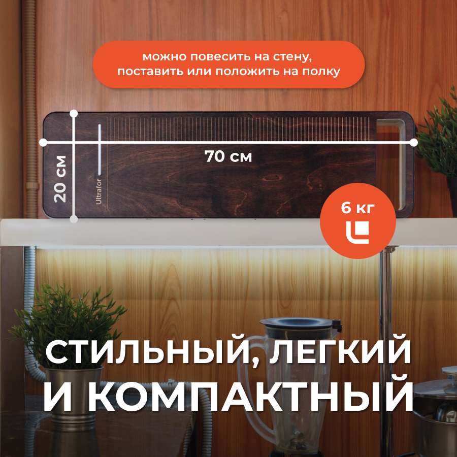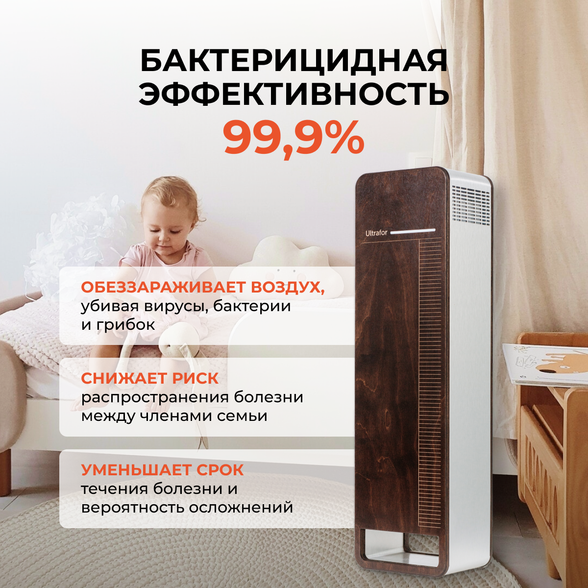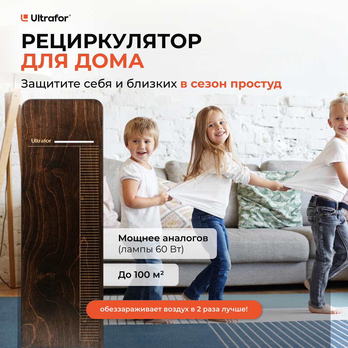 Ultrafor Standart - пожалуй, один из самых стильных аппаратов среди всех обеззараживающих приборов для дома. Выполнен в цвете темное дерево. В таком исполнении прибор выглядит дорого. Его легко вписать его в большинство интерьеров. Рассчитан на работу в больших помещениях до 100 кв. м. Прибор оснащен 2-мя ультрафиолетовыми бактерицидными лампами, мощность каждой лампы 30 Вт.