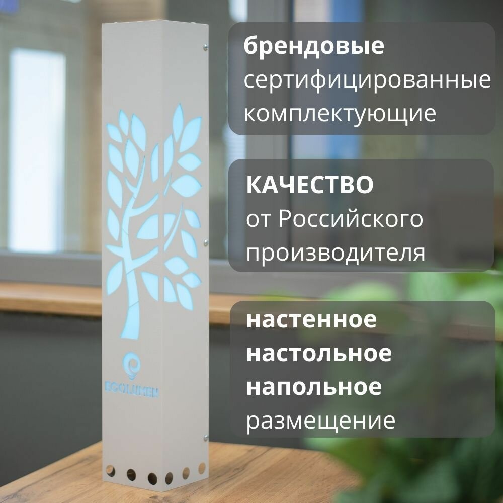 Бактерицидная настенная лампа кварцевая уничтожает 99,9% вирусов, микробов, коронавирусной инфекции (КВ19) и особенно необходим в период вирусных эпидемий. Обеззараживание происходит за счет ультрафиолетового безозонового облучения с длиной волны 253,7нм. Кварцевая лампа бактерицидная серии УФ-15 Березка это отличный подарок для красоты и здоровья Ваших близких: маме, для отца, дедушки, бабушки!