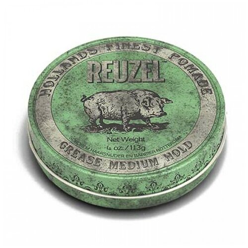 Reuzel Помада для волос мужская зеленая банка Hog - это профессиональное средство для укладки волос, созданное на основе петролатума. Продукт обеспечивает среднюю степень фиксации.