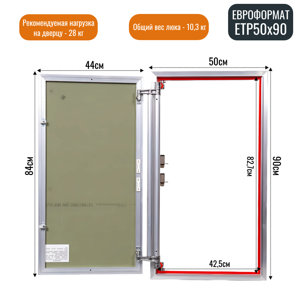 Ревизионный люк Практика Евроформат ЕТР 50-90, алюминий, под плитку, магнитный замок, от завода производителя