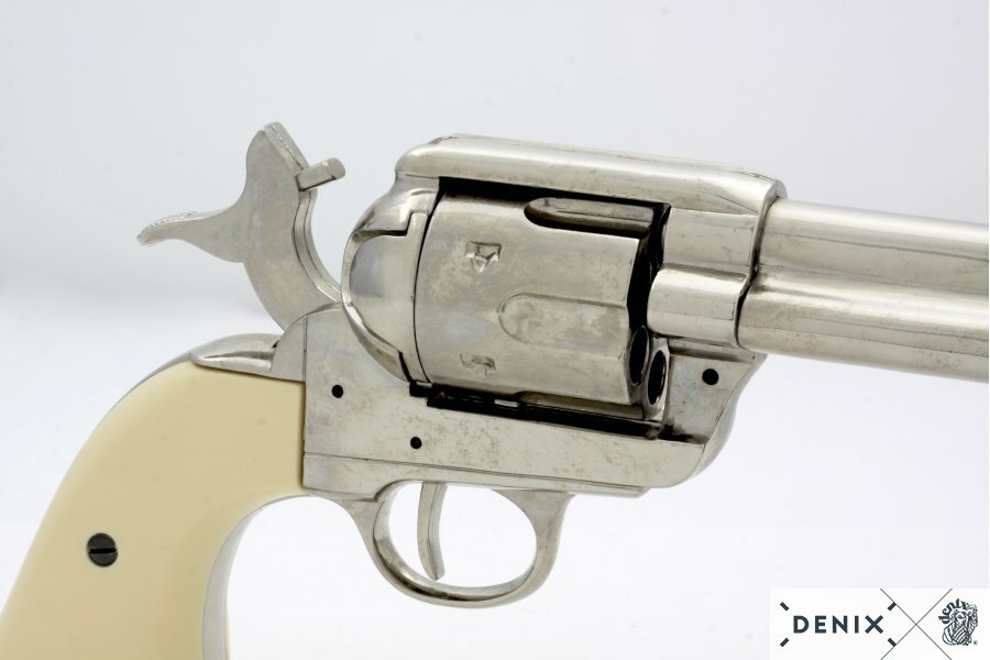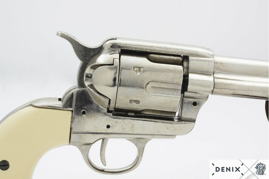 Револьвер "Peacemaker"/"Миротворец" от компании Colt, выпущенный в США в 1873 году, является исторически значимым и культурно ценным оружием. Этот прекрасно изготовленный макет имеет длину ствола 5,5 дюймов, что делает его как надежным, так и удобным в использовании. Дизайн револьвера "Peacemaker" уникален и стильный, с элегантными гравировками на корпусе и красивой роговой рукояткой. Он отлично передает атмосферу Дикого Запада и приключений времен ковбоев. Этот макет револьвера пользуется популярностью среди коллекционеров, историков и любителей военного искусства. Он символизирует не только техническое совершенство и прочность, но и романтическую историю долгих прекрасных времен. Револьвер "Peacemaker" по праву считается одним из самых значимых оружий в истории, и является неотъемлемой частью американского наследия. Очень важно, что макет не является функционирующим огнестрельным оружием, но имеет рабочего ударно-спускового механизма. Он представляет собой только модель, которая может использоваться в качестве декоративного элемента, реквизита для фотосессий, сценических постановок или коллекционного предмета . Размер: L = 30,5 см.